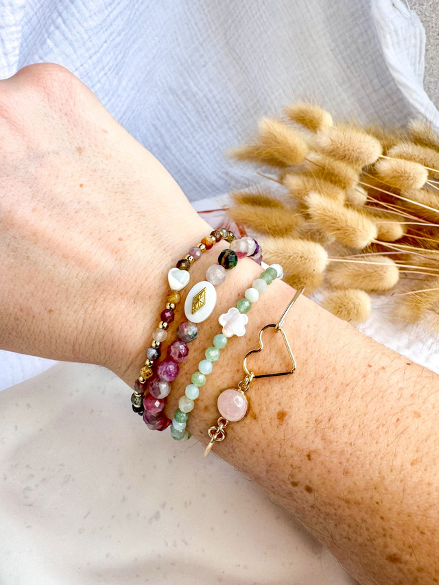 À l’occasion d’Octobre Rose, 5 € seront reversés pour chaque paire de boucles d’oreilles Porte-Bonheur Quartz Rose achetée, afin de soutenir la recherche contre le cancer du sein. Chaque bracelet est monté et serti artisanalement dans mon atelier angevin.