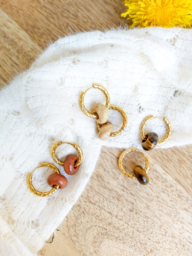 Créole de 22mm en acier inoxydable doré ou argenté, effet martelé. (Existe aussi en petit modèle 15mm.)